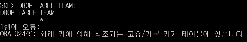 [예제] PLAYER 테이블이 참조하는 TEAM 테이블을 제거한다.