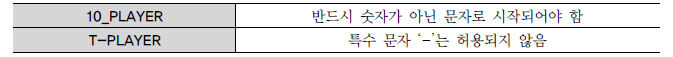 [예제] 다음 조건의 형태로 선수 테이블을 생성한다.