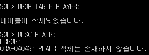 *PK가 두개라면 괄호 안에 같이 묶어주면 된다. ex) CONSTRAINT PLAYER PRIMARY KEY (PLAYER_ID, PK2)