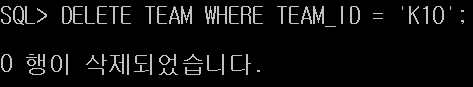 [예제] PLAYER 테이블이 참조하는 TEAM 테이블의 데이터를 삭제해본다.